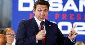 Gov. Ron DeSantis's (R-FL) campaign is hitting former President Donald Trump for his...