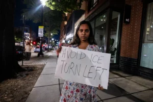 D.C. protesters chanted “Whose Street? Our street!” and “Go home!” toward federal...