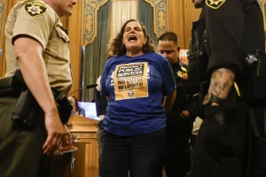 Police arrested and removed nearly a dozen union workers protesting Mayor Daniel...