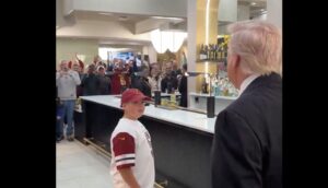 President Donald Trump handed a young Washington Commanders fan his presidential challenge coin...