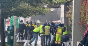 Portland police cleared part of a protest camp outside of the U.S. immigration...