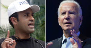 Presidential hopeful Vivek Ramaswamy mocked President Joe Biden's attempt to join in the...