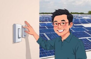 <img title="Chinese man turning off solar panels (half AI/half a photo of...