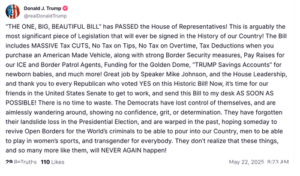 The One Big Beautiful Bill Act passed 215 to 214. All Democrats...