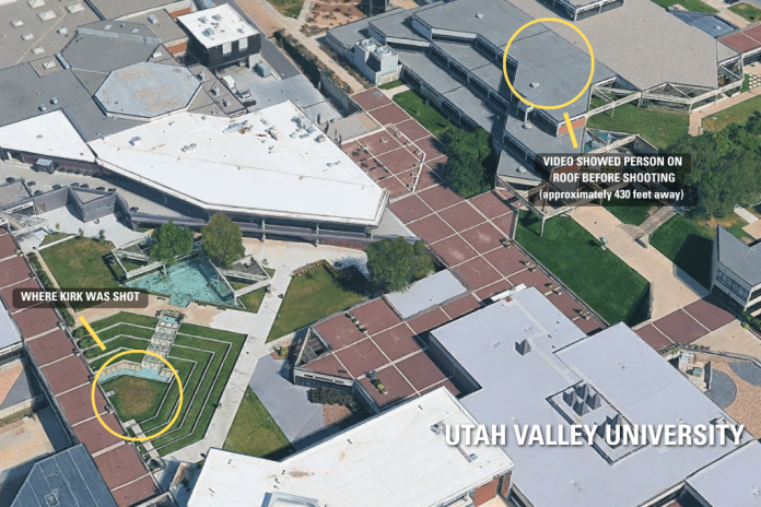 The assassin is believed to have sniped Kirk from a position on top of the Sorensen Student Center, several hundred feet away from him, then made a hasty retreat.