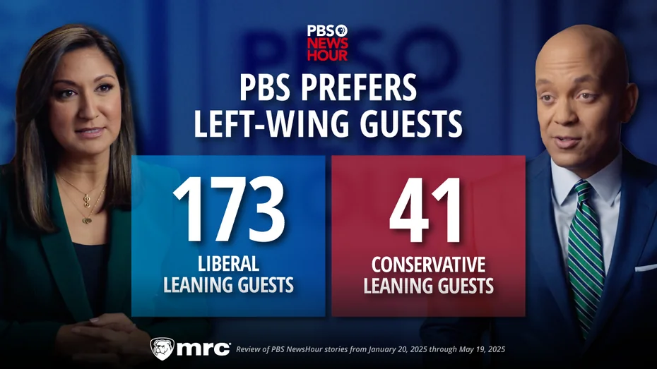 According to a new analysis of guests on NewsHour by the watchdog Media Research Center, “liberal-Democratic leaning guests outnumbered conservative-Republican leaning guests by 173-41, a ratio of 4.2-to-1.”