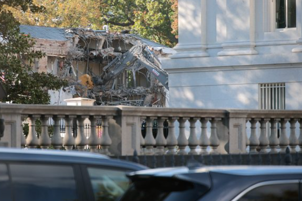 CONSTRUCTION CREWS DEMOLISH WALL OF WHITE HOUSE EAST WING FOR BALLROOM CONSTRUCTION