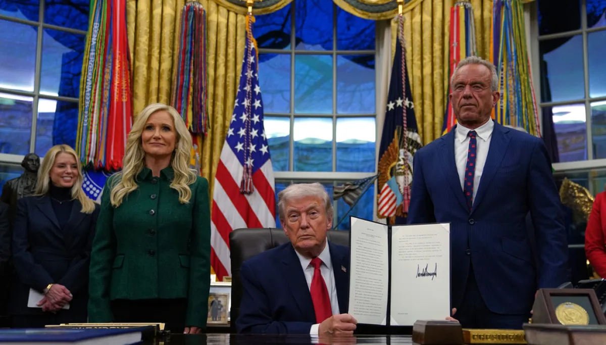 From behind the Resolute Desk, between Health and Human Services Secretary Robert F. Kennedy Jr. and Interior Secretary Doug Burgum‘s wife Kathryn Burgum, who is also a recovered alcoholic, Trump explained how the pair would chair the initiative and provide advice across the public and private sector to ensure more Americans receive the treatment they need and are celebrated as their progress through the recovery process.