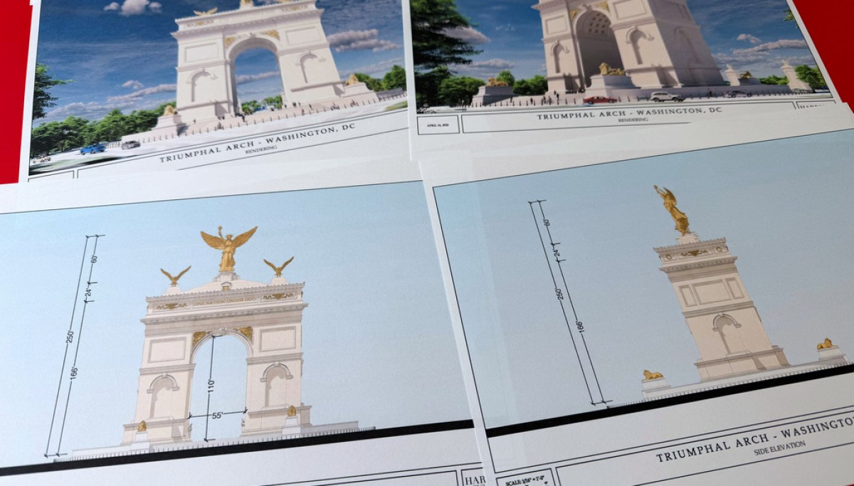 The White House unveiled new renderings for the Triumphal Arch in Washington, D.C., on Friday, showing a key phrase from the Pledge of Allegiance emblazoned on the structure.