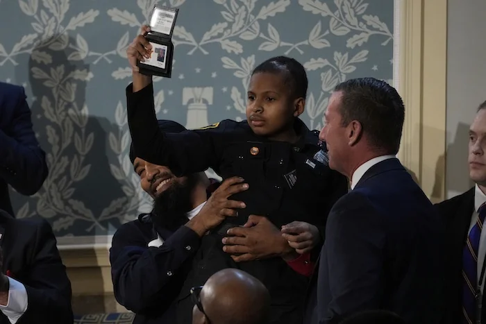 “Joining us in the gallery tonight is a young man who truly loves our police,” Trump said at the time.