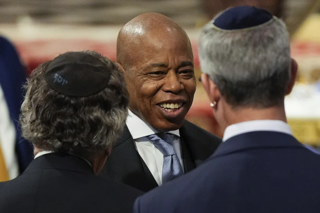 New York City Mayor Eric Adams arrives at a Mass for Pope Francis at St. Patrick’s Cathedral, Tuesday, April 22, 2025, in New York. (AP Photo/Julia Demaree Nikhinson)