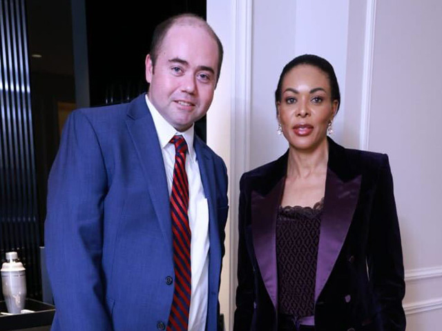 Breitbart News Washington Bureau Chief Matthew Boyle and Dr Françoise Joly, Personal Representative of the President for Strategic Affairs and International Negotiations for the Republic of Congo, at the Waldorf Astoria Hotel in New York on September 23, 2025. (Courtesy of the Republic of Congo)