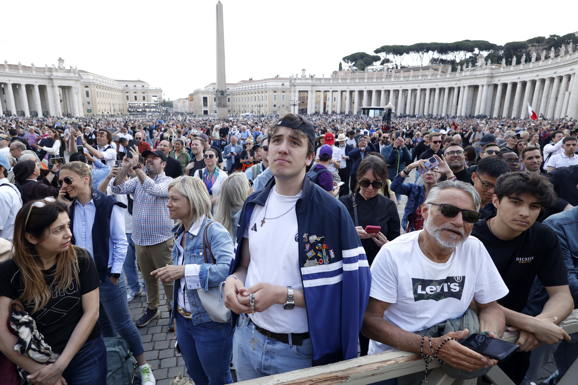 10:06 a.m. — The faithful are packing into St. Peter’s Square awaiting the announcement. Flags from around the world can be seen, confirming the universal nature of the Catholic Church and its over 1.4 billion faithful from every corner of the earth. The diverse crowd also looks young.