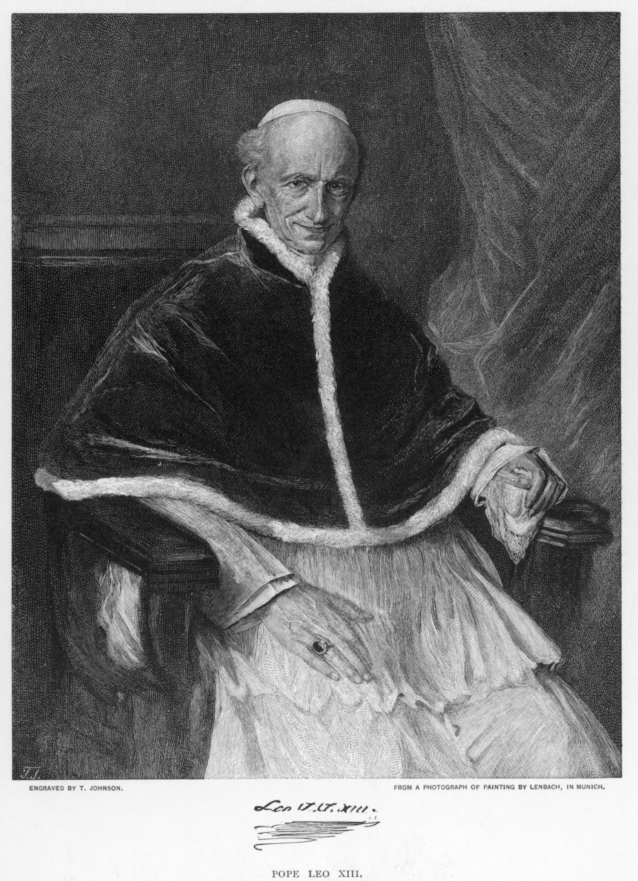 Pope Leo XIII (1810-1903), whose encyclical “Rerum Novarum” (or “Rights and Duties of Capital and Labor”) defended private property and the rights of workers to form unions, while also condemning socialism and unrestricted capitalism. (Hulton Archive/Getty Images)