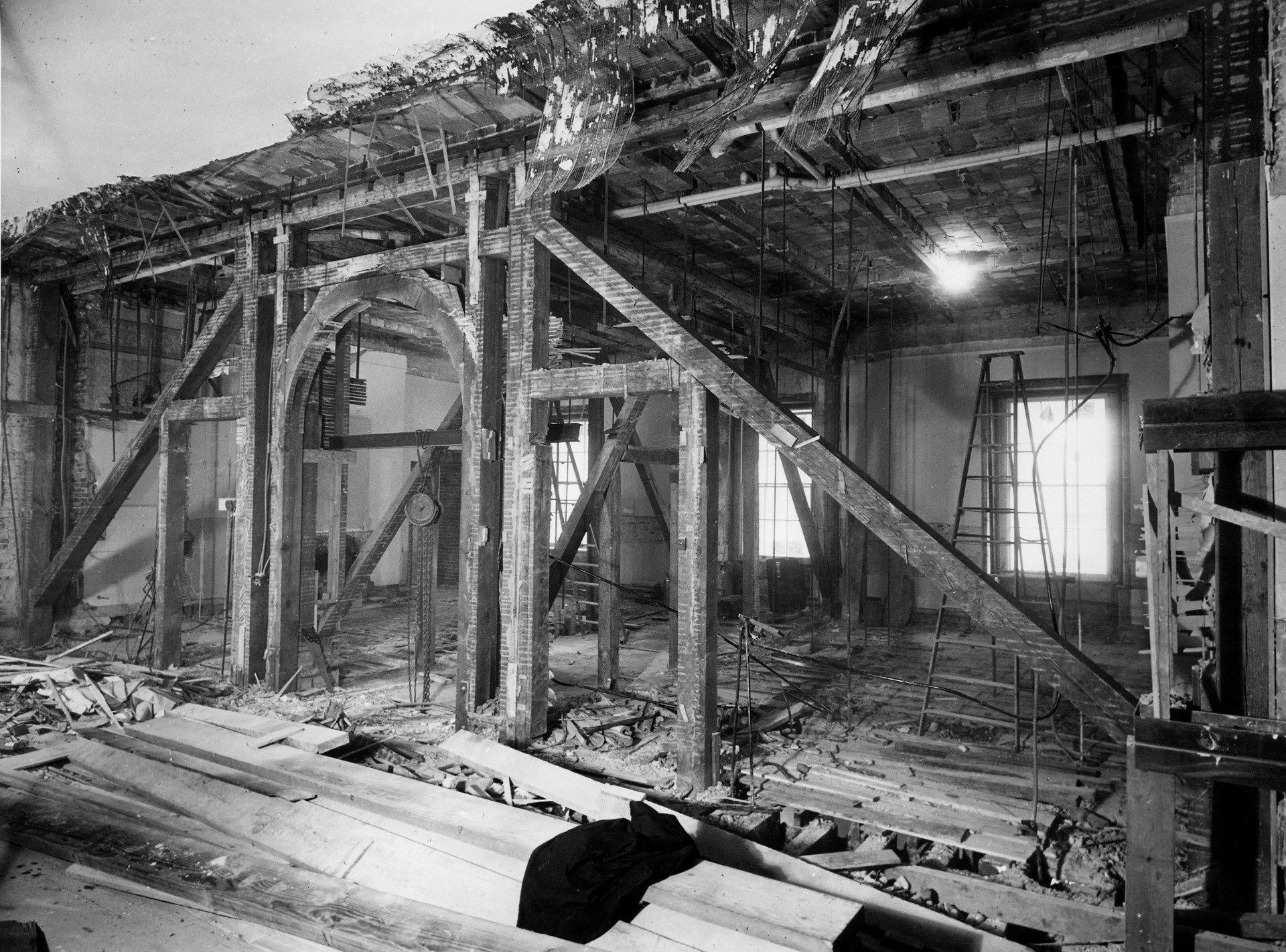 The White House’s executive offices undergo repairs in 1930 following the Christmas Eve fire. (Library of Congress)