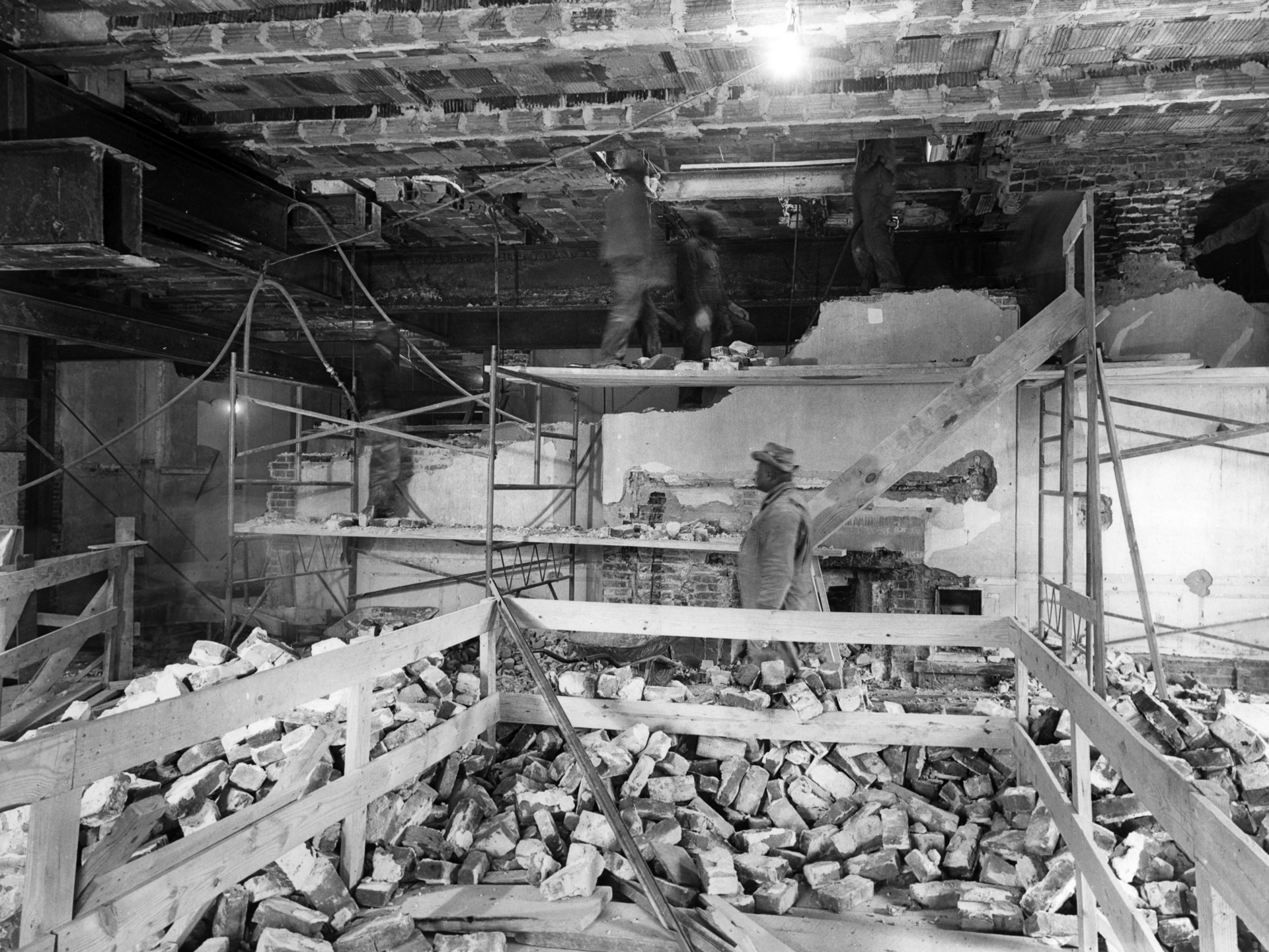 Workers remove debris from the renovation of the White House on February 27, 1950. (Smith Collection/Gado/Getty Images).