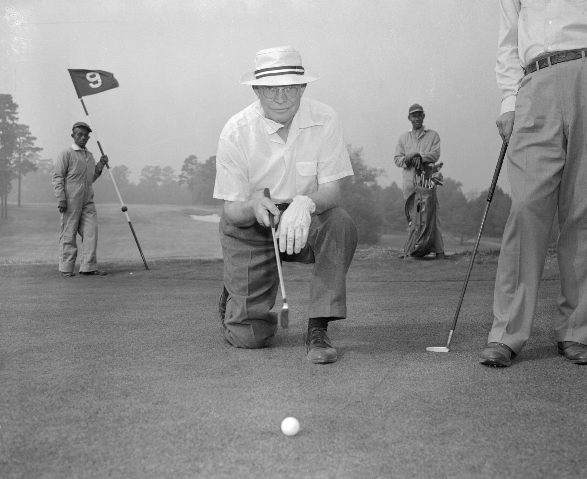Ike was as avid a golfer as Donald Trump. But unlike Trump, he liked to wear his cleats inside his office—so much so that the Oval Office floor was full of spike marks, much to the horror of Jaqueline Kennedy when JFK took charge of the White House.