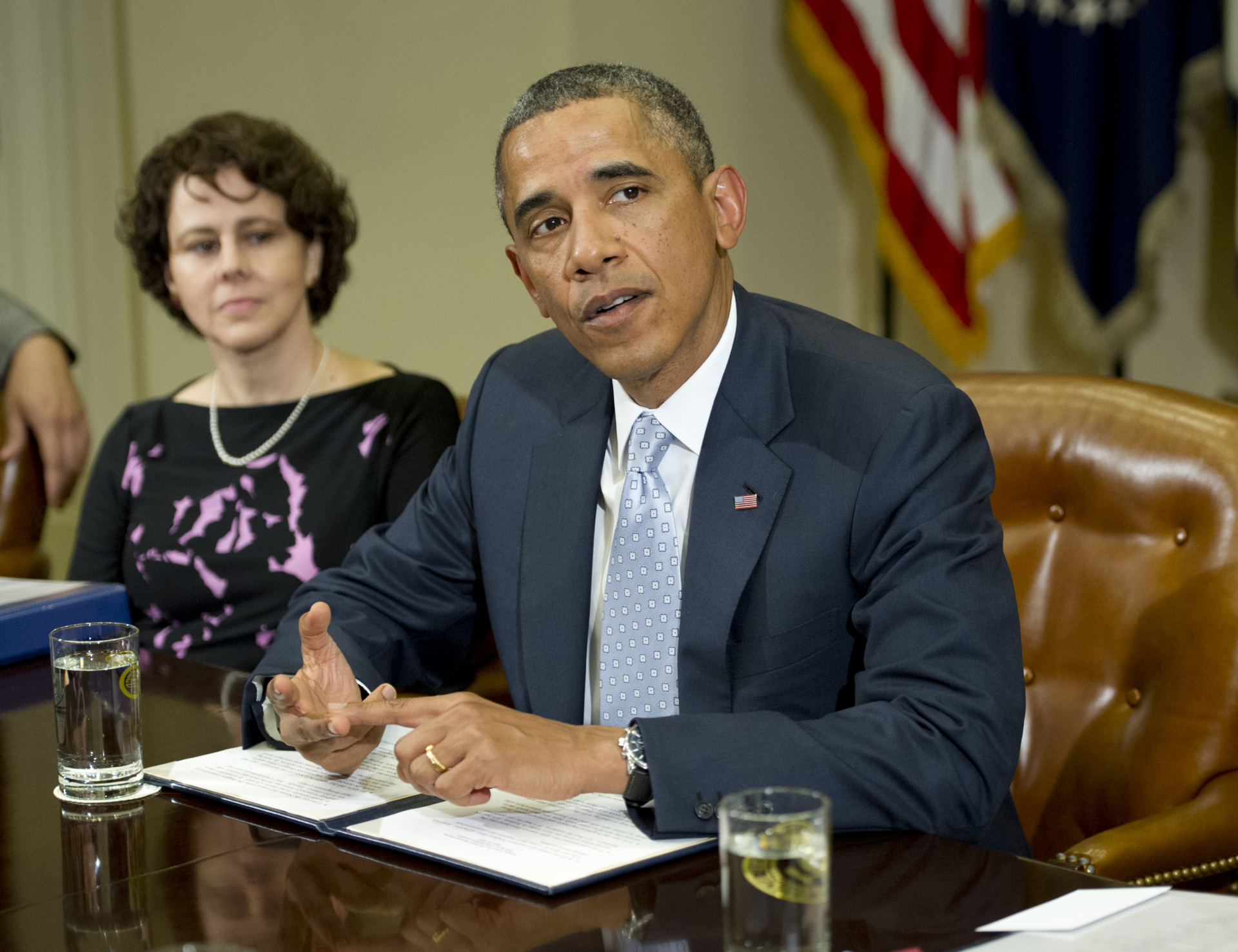 President Barack Obama, right, with his Director of the Domestic Policy Council Cecilia Muñoz, speaks to the press prior to a meeting with CEOs about immigration reform on June 24, 2013 in Washington, DC. (Ron Sachs/Getty Images)
