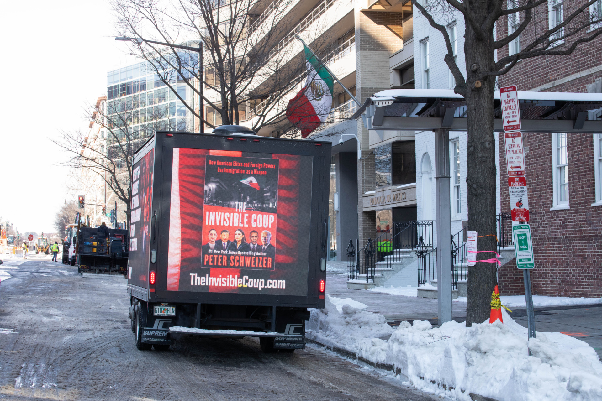 A billboard truck was seen this week outside the Mexican Embassy in Washington, DC, highlighting the bombshell revelations in Breitbart Senior Contributor Peter Schweizer’s #1 New York Times bestselling book, The Invisible Coup: How American Elites and Foreign Powers Use Immigration as a Weapon