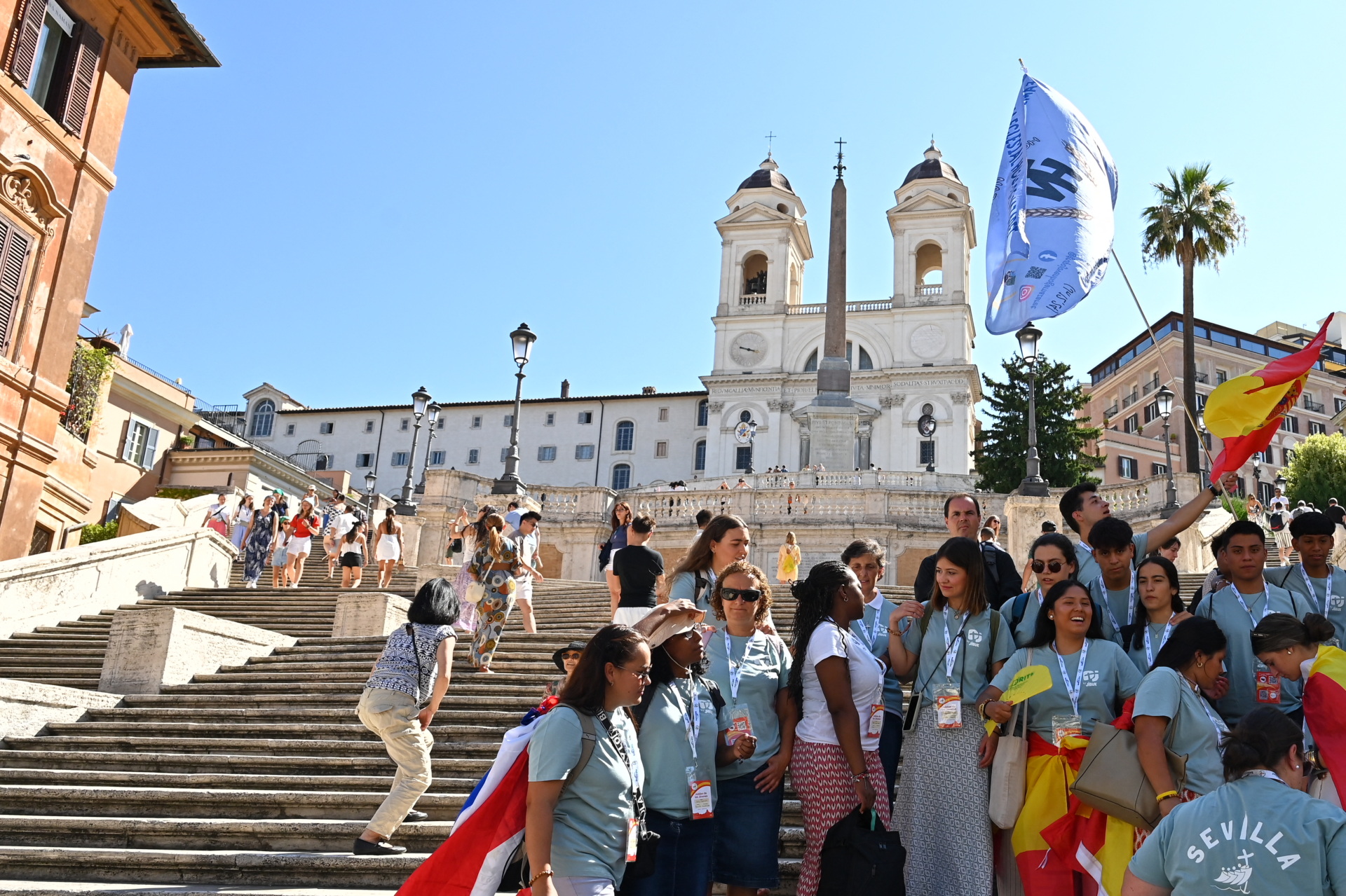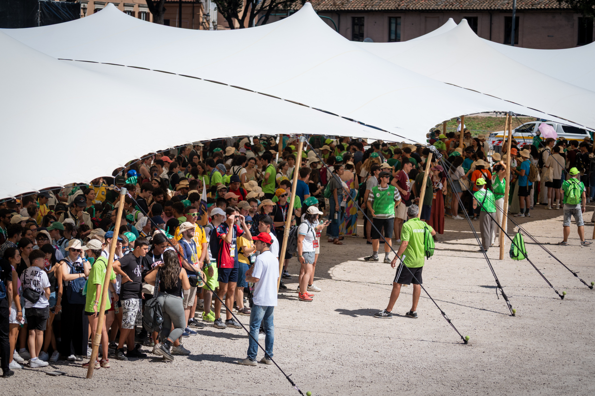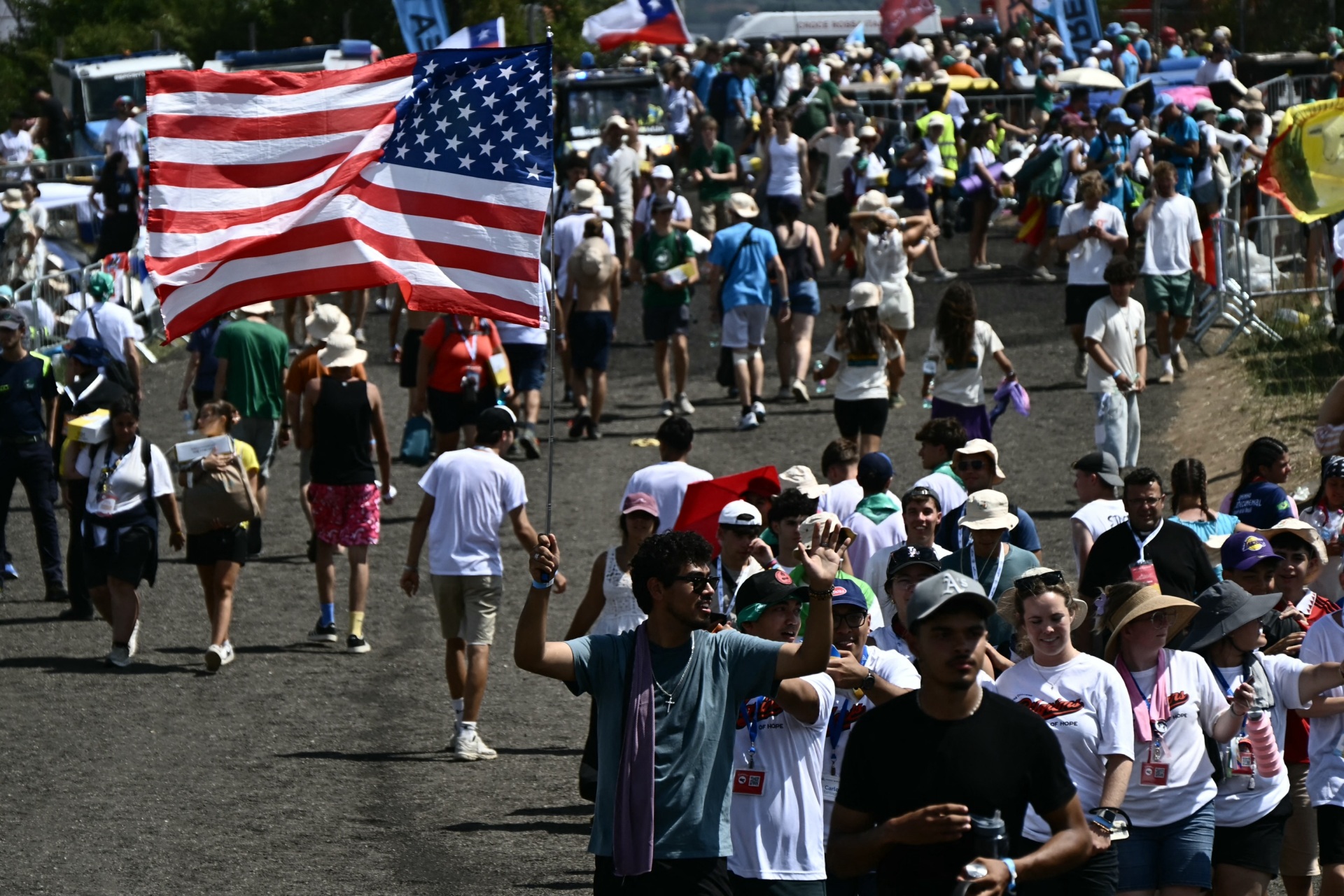 Early Saturday, countless groups of young people set off from central Rome for the venue in Tor Vergata after filling water bottles, applying suncream and adjusting backpacks.