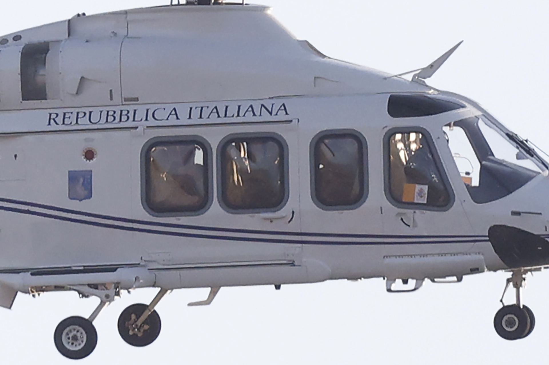 Pope Leo XIV is seen aboard a helicopter of the Italian Air Force as he arrives to lead a vigil prayer for the Jubilee of Youth at Tor Vergata, on the outskirts of Rome, Italy, on August 2, 2025. (Riccardo De Luca/Anadolu via Getty Images)