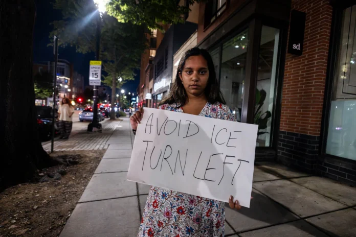 Another protester in her mid-twenties, Meera, also helped direct traffic away from the block as soon as she saw the checkpoint assembling from her nearby apartment complex. She noted how she felt both empowered by the neighborhood’s resistance but also saddened to see federal officers in her own neighborhood.