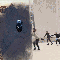 Split image shows dark substance and skaters rehearsing outdoors