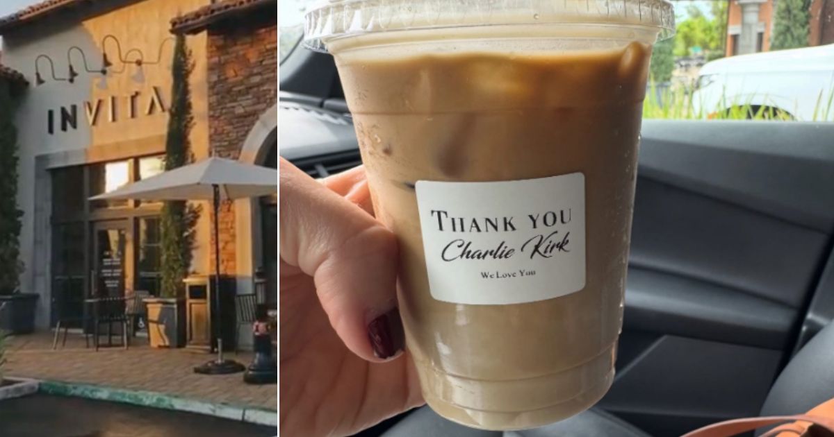 Shortly after conservative Christian icon Charlie Kirk was assassinated, Sara De Luca decided to honor him by placing stickers on coffee cups at her business, Invita Cafe in Rancho Santa Fe, California — a suburb of San Diego.