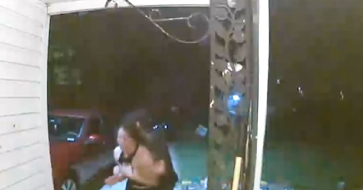 The homeowner whose camera caught the scene told KSN-TV she does not know the woman in the video.
