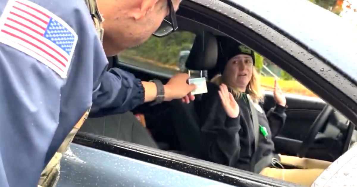 “I’m just a mom,” the pathetic woman said after handing over her license.