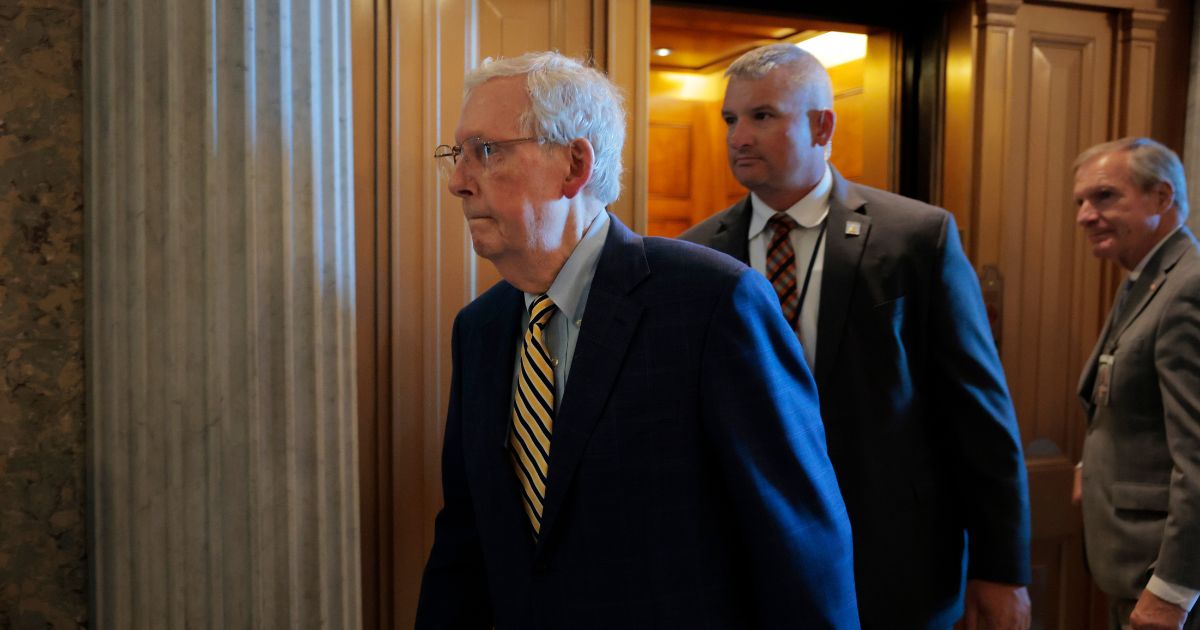 Former Senate Majority Leader Mitch McConnell fell on Thursday while walking through the U.S. Capitol building complex on his way to vote.