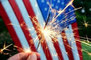 President Donald Trump and First Lady Melania Trump hold a Fourth of July...