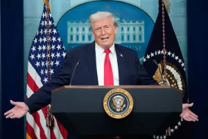 President Donald Trump joined reporters for a nearly two-hour press briefing on...