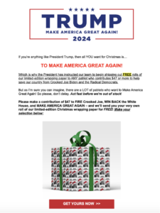 Former President Donald Trump's campaign has revealed new Christmas wrapping paper, this time...