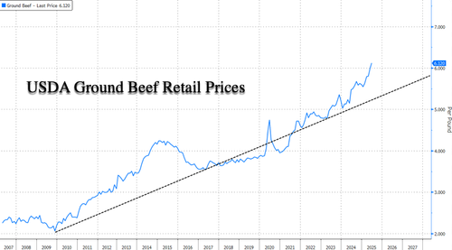 America has slid into a beef supply crisis, pushing retail ground beef prices above $6 per pound. Years of herd reduction, driven mainly through elevated inflation, high feed costs, and adverse weather across the cattle belt, have shrunk the nation's herd to its smallest size since the early 1970s.