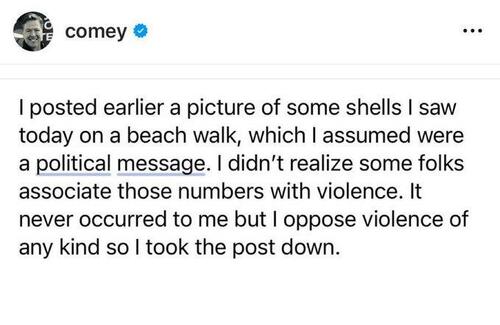 Former FBI Director James Comey posted a photo of sea shells arranged into the numbers "86 47" on his Instagram account today, before shortly deleting the post.