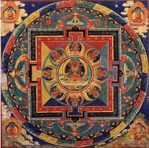 What may help is reference to a striking representation of the this drawing into a center and a pulling away from it: the mandala. This is a radial pattern like that of a flower, the eye, a cathedral rose window, with endless variations in art. The pattern is, in a graphic sense, a template of creation – the Big Bang, the germinating seed, a baby rapidly filling the space around its biologic egg/seed center. The elements of the design are oriented both toward and away from an originating center, in a mutually embracing act that produce an object or organism of unique character.