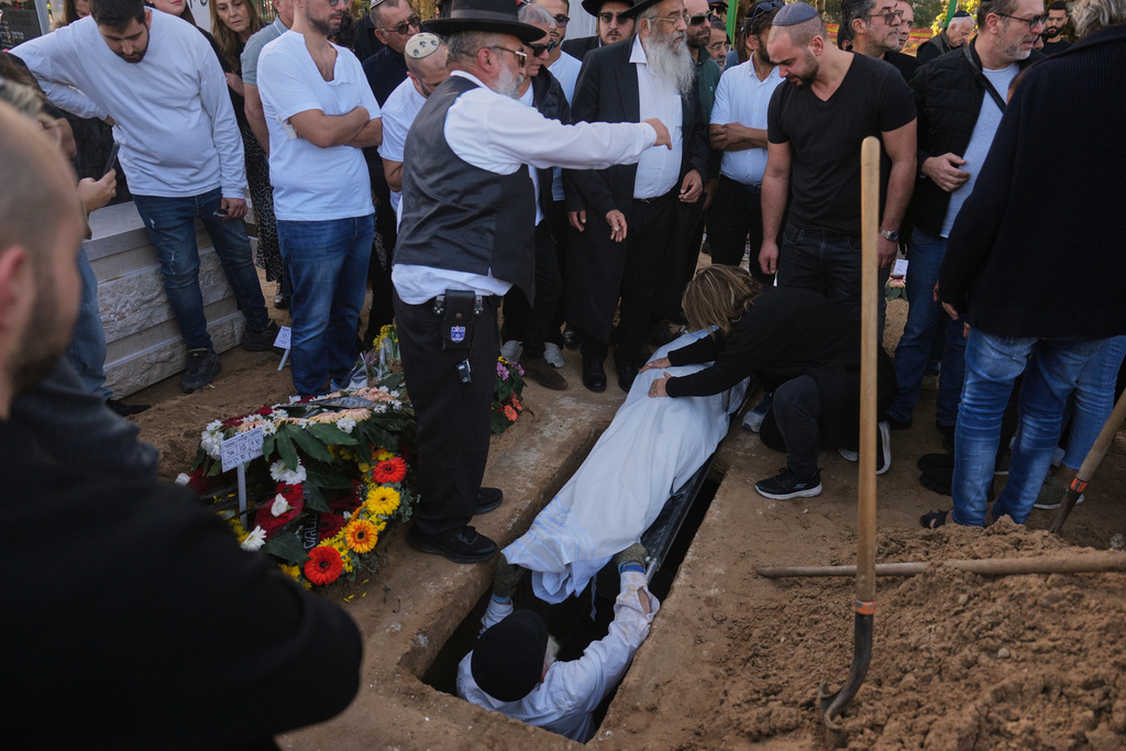 Annie mourns over the body of her son Dan Elkayam, a young French Jewish man who was killed in the mass shooting that targeted a Hanukkah celebration on Sydney's Bondi Beach in Australia, during his funeral in Ashdod, Israel, Thursday, Dec. 25, 2025.