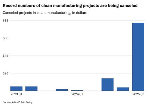 In just the first quarter of 2025, more EV-related projects were canceled than in the previous two years combined, according to Atlas Public Policy.