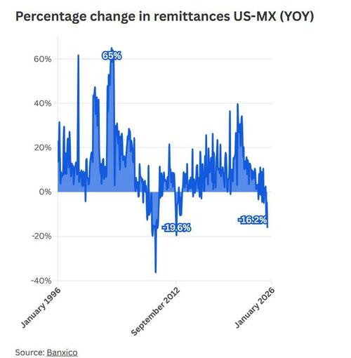 Remittance payments US→MX plummeting, down over -2 million from a year ago.