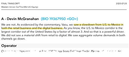 CEO Devin McGranahan explained that the "slowdown" is in both retail and digital businesses between the United States and Mexico.