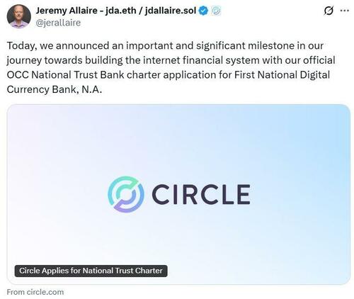 If the application is approved by the US Office of the Comptroller of the Currency (OCC), Circle’s First National Digital Currency Bank would be authorized to operate as a federally regulated trust institution, Circle said in a statement on Monday.