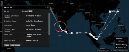 The Singapore-flagged container ship Wan Hai 503 erupted in flames after an explosion rocked the vessel earlier today off the coast of Beypore, a port town in Kerala, southern India.