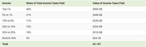 That’s right. The bottom 145 million US income tax filers (out of 161 million total filers) currently pay just $500 billion in Federal income taxes. That’s barely $3,500 per return and even then approximately 50 million of these returns owe zero taxes or actually get tax credit refunds for taxes they haven’t paid!