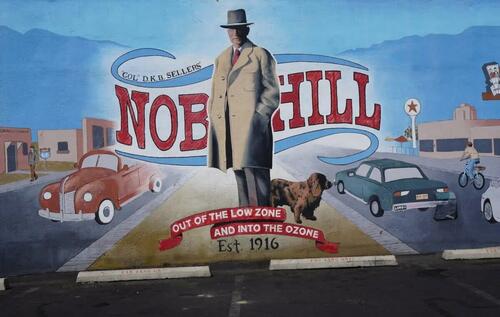 A mural depicts the historic Nob Hill section of Albuquerque, N.M., near Central Avenue on Sept. 3, 2025. Allan Stein/The Epoch Times