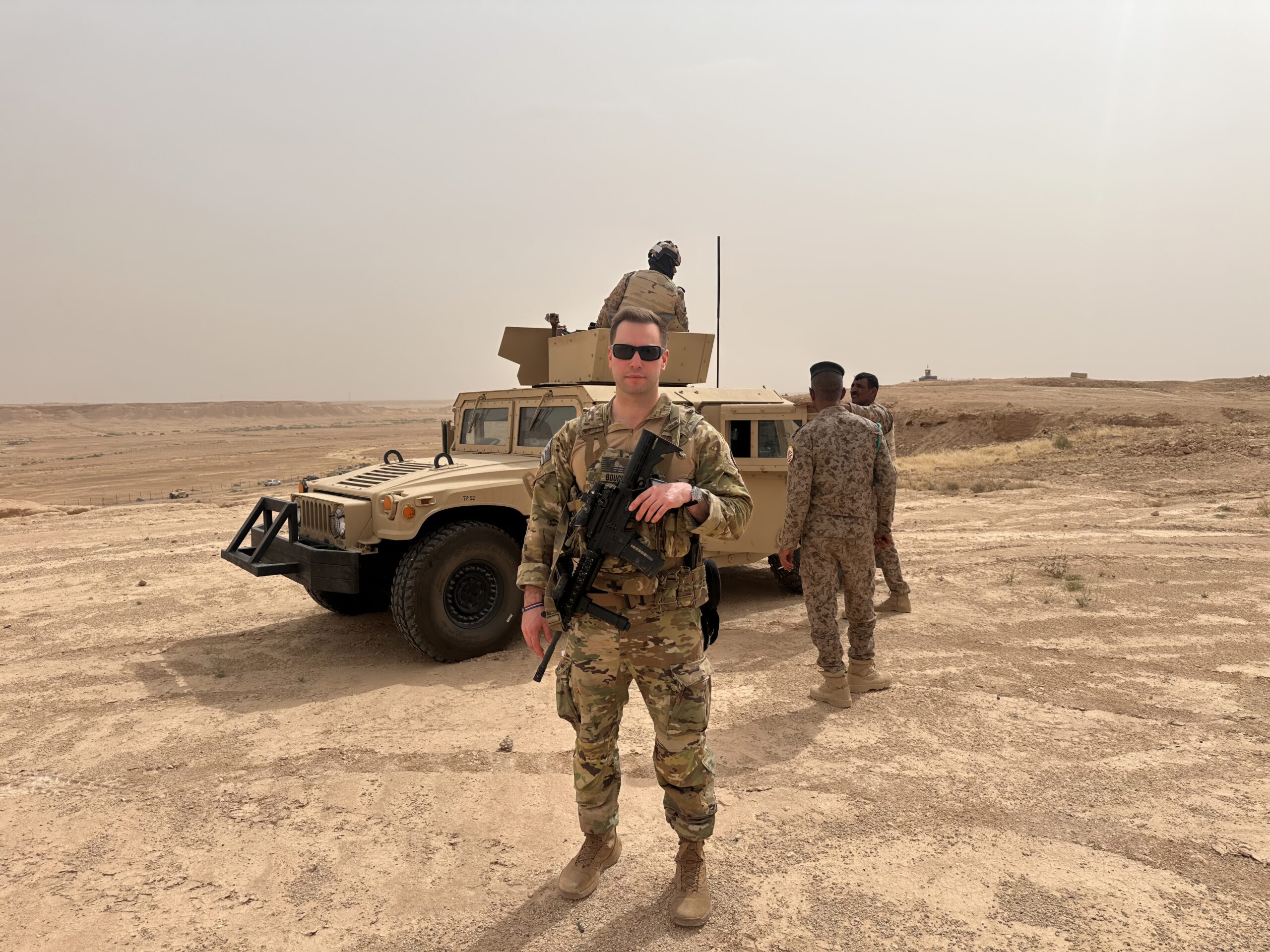 Michael Bouchard stands in front of a Humvee.