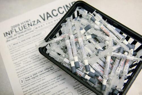 Doses of H1N1 influenza vaccine sit in a basket at Rush University Medical Center in Chicago on Oct. 6, 2009. Scott Olson/Getty Images