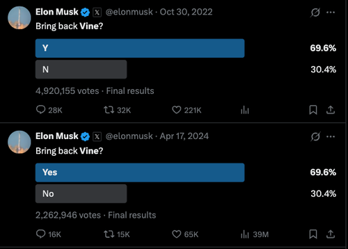 Musk has asked in a series of polls on X whether he should bring back Vine.
