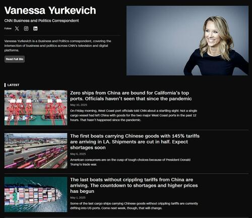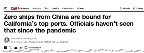 But, as always happens, it was CNN that finally took this "broken telephone" narrative to its absurd conclusion, when the media outlet that has become the butt of all propaganda jokes declared that "Zero ships from China are bound for California’s top ports. Officials haven’t seen that since the pandemic."