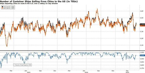 Meanwhile, the entire discussion about empty ports and empty shelves is completely moot because as Reuters reported even before the news of this weekend’s US-China trade talks breakthrough hit, “China-based shipping agents have resumed buying container space for goods headed for the United States after a series of U.S. tariff-induced cancellations, as Beijing and Washington head for trade talks in Switzerland.”